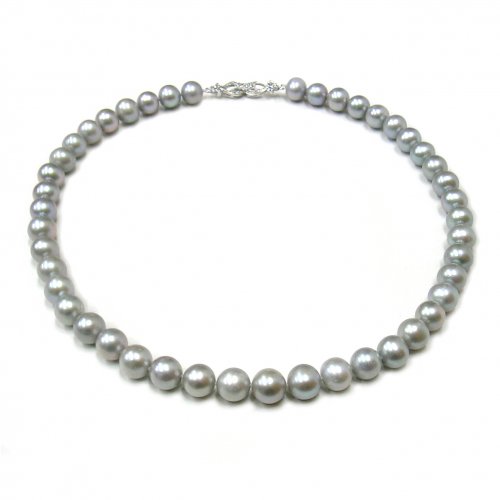 - 그레이 컬러 담수 진주 9~9.5mm 매듭작업으로 제작